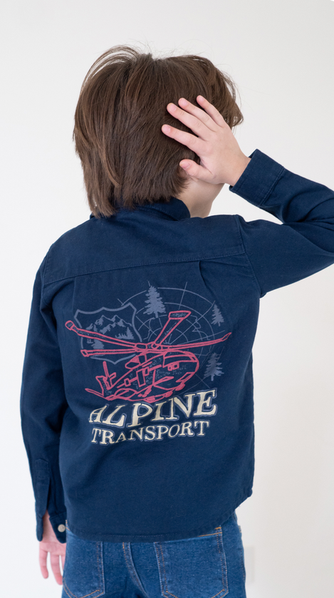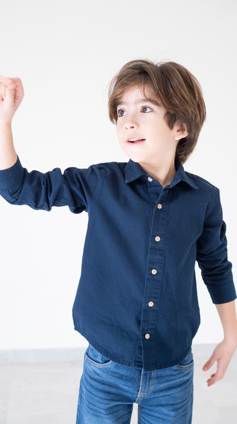 La Camisa Enzo es la prenda ideal para que los niños luzcan con estilo y comodidad. Confeccionada en gabardina azul marino de alta calidad, ofrece durabilidad y un tacto suave para el cuidado de la piel infantil. Su diseño incluye una estampa exclusiva en la espalda, que aporta un toque moderno y divertido, perfecto para cualquier ocasión. Características destacadas: Material: Gabardina resistente y cómoda Color: Azul marino clásico Estampa: Diseño original en la espalda