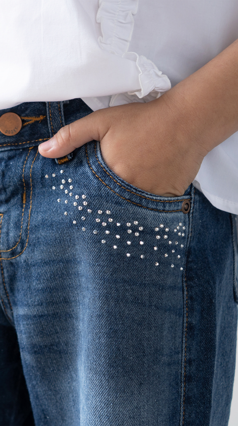 JEANS WIDE LEG ,diseñados especialmente para niñas que buscan comodidad y estilo. Su corte amplio y moderno permite total libertad de movimiento, Confeccionados en un material resistente